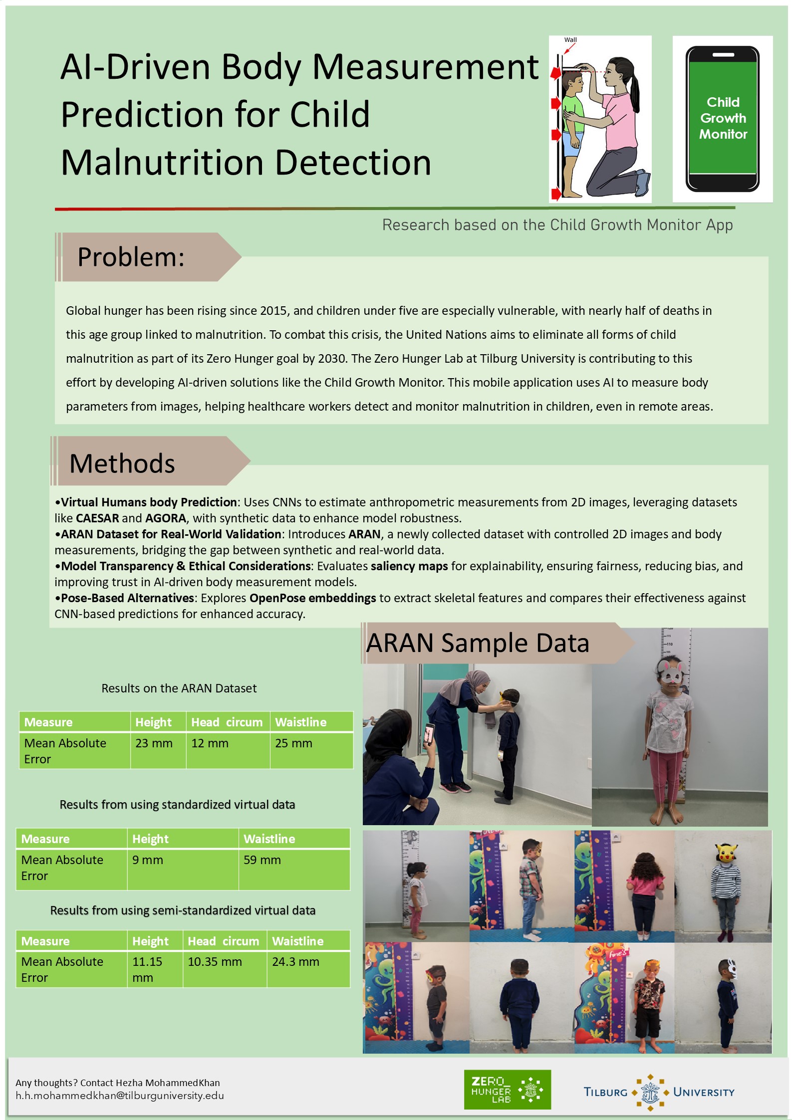 Precisely estimating a child’s body measurements and weight from a single image is useful in pediatrics for monitoring growth and detecting early signs of malnutrition. The development of estimation models for this task is hampered by the unavailability of a labeled image dataset to support supervised learning. This paper introduces the ‘‘Age-Restricted ANonymized’’ (ARAN) dataset, the first labeled and GDPR-approved image dataset of children with body measurements. The ARAN dataset consists of images of 512 children aged 16 to 98 months, each captured from four different viewpoints, i.e., 2048 images in total. The dataset includes each child’s height, weight, age, waist circumference, and head circumference measurements, which is GDPR-approved because we used masks to cover the faces of the children. The dataset is a solid foundation for developing prediction models for various tasks related to these measurements. To create a suitable reference, we trained state-of-the-art deep learning algorithms on the ARAN dataset to predict to predictrectly from the images. The best results are obtained by a DenseNet121 model achieving competitive estimates for the body measurements, outperforming state-of-the-art results on similar tasks. The ARAN dataset is developed as part of a collaboration to create a mobile App to measure children’s growth and detect early signs of malnutrition contributing to the United Nations Sustainable Development Goals.